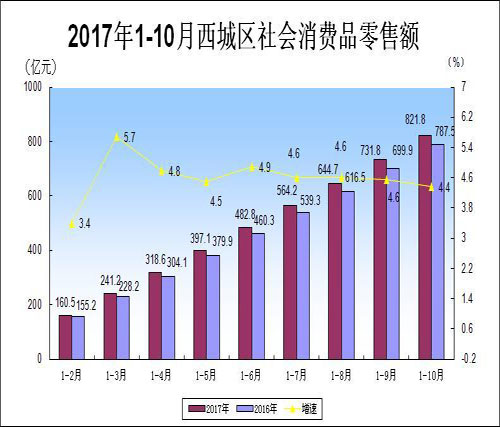 2017年1-10月西城区社会消费品零售额