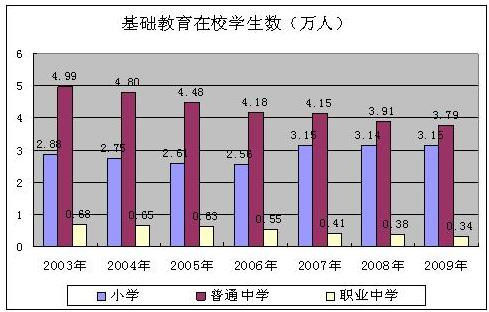 教育 各级各类教育继续保持全市领先优势,教育结构和学校布局调整更加合理,办学条件明显改善。年末,全区共有普通中学34所,全年招生12532人,在校学生37866人,毕业生13119人;职业中学2所,全年招生1209人,在校学生3449人,毕业生1344人;小学43所,全年招生5177人,在校学生31503人,毕业生5541人;幼儿园37所,在园幼儿数8175人;特殊教育学校3所,全年招生83人,在校学生562人,毕业生53人;工读学校1所,在校学生115人。