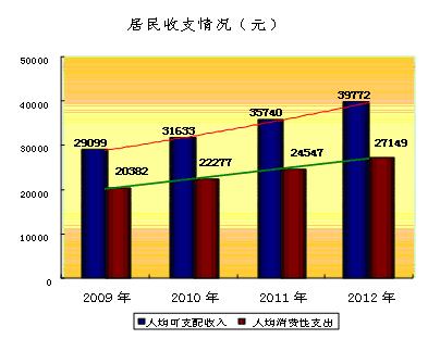 居民生活 全年居民人均可支配收入39772元,比上年增长11.3%;居民人均消费性支出27149元,比上年增长10.6%。恩格尔系数为30.5%,比上年增加0.3个百分点。居民平均消费倾向为0.7,与上年持平。