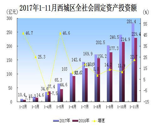1-11月西城区全社会固定资产投资完成281.4亿元